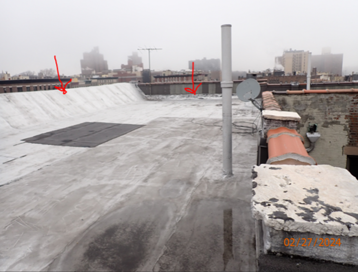 3. If the roof goes to the edge, then that’s not a parapet, therefore does not require inspection. In photo below, red arrows point to roof edges, not parapets.